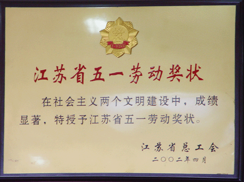 > 2002年度江蘇省五一勞動獎狀