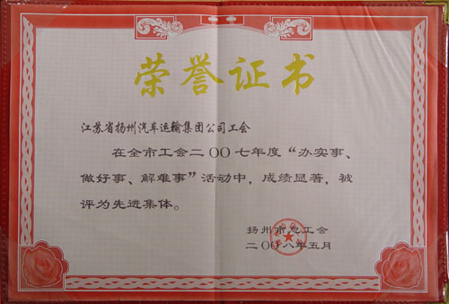 2007年度揚州市工會“辦實事、做好事、解難事”活動先進集體
