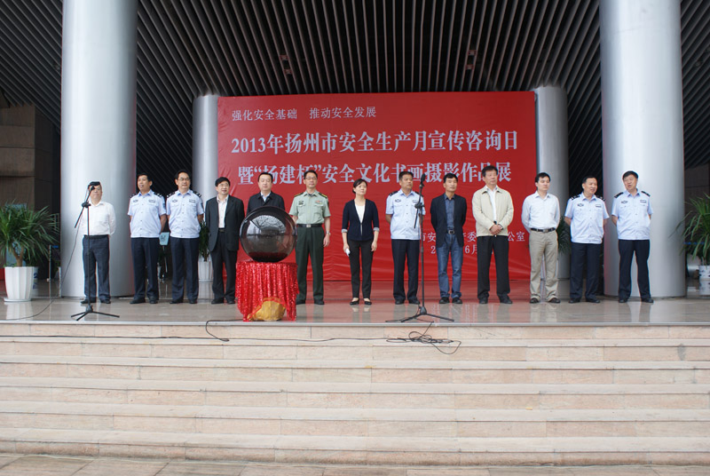 6月9日上午,2013年揚(yáng)州市“安全生產(chǎn)月”宣傳咨詢?nèi)蒸?ldquo;揚(yáng)建杯”安全文化書畫攝影作品展在市美術(shù)館北門廣場(chǎng)舉辦。副市長(zhǎng)張寶娟出席了當(dāng)天的活動(dòng),并和廣大市民一同參觀安全文化書畫攝影作品。市安監(jiān)局、交通局、公安局、建設(shè)局、氣象局、質(zhì)監(jiān)局等單位領(lǐng)導(dǎo),以及部分駐揚(yáng)單位職工代表,共計(jì)400余人參加了活動(dòng)。