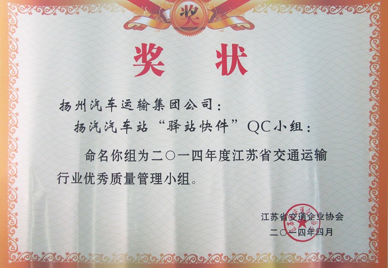 又訊:在此前進行的江蘇省交通運輸行業(yè)優(yōu)秀QC小組成果評選中,集團公司被表彰為“省交通運輸行業(yè)質(zhì)量管理小組活動優(yōu)秀企業(yè)”,揚州汽車站“驛站快件”QC小組(成果《降低到達庫收發(fā)貨的誤差率》)與修理廠“技術(shù)攻關(guān)”QC小組(成果《汽車變速箱小車式托架的研制》)被評為“省交通運輸行業(yè)優(yōu)秀質(zhì)量管理小組”。
