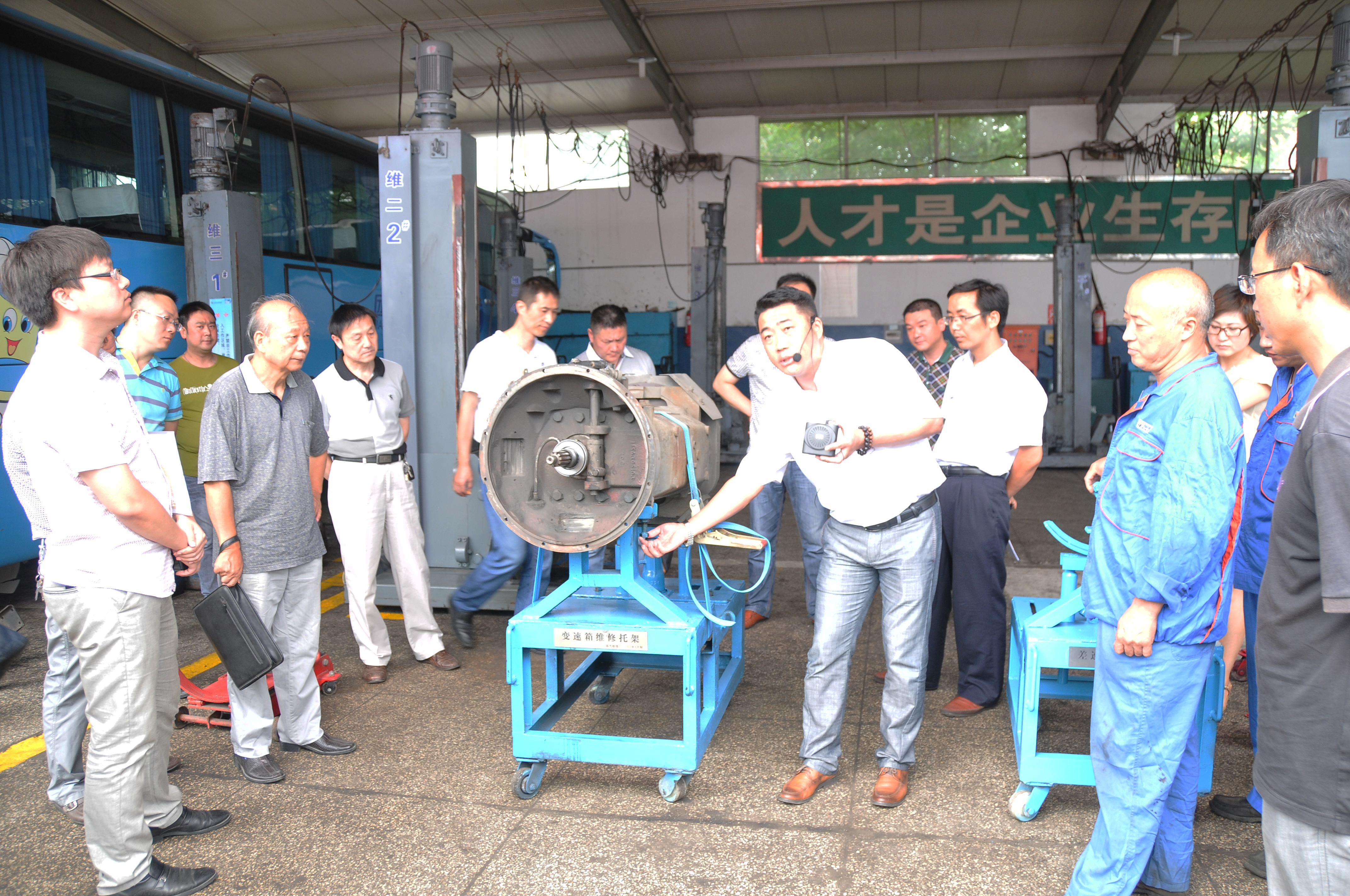 會議聽取了我司的“客車變速箱小車式托架”和鎮(zhèn)江江天集團的“客車空濾除塵裝置”兩個QC成果的介紹,并進行了現(xiàn)場觀摩。兩家公司精心準備了ppt演示材料,對各自的成果從研制背景、技術(shù)參數(shù)、制作材料等進行了多方位、深入、細致的講解,并現(xiàn)場演示了兩個成果的實際操作流程。參會人員對兩個來自生產(chǎn)第一線員工創(chuàng)造的成果表示了極大興趣,大家紛紛拿出相機,記錄下每個細節(jié)。在互動過程中,對成果具體操作進行了答疑,并對一些技術(shù)標準、行業(yè)規(guī)范的理解進行了討論。大家認為這兩個成果既解決了所在單位的實際問題,又具有推廣價值。