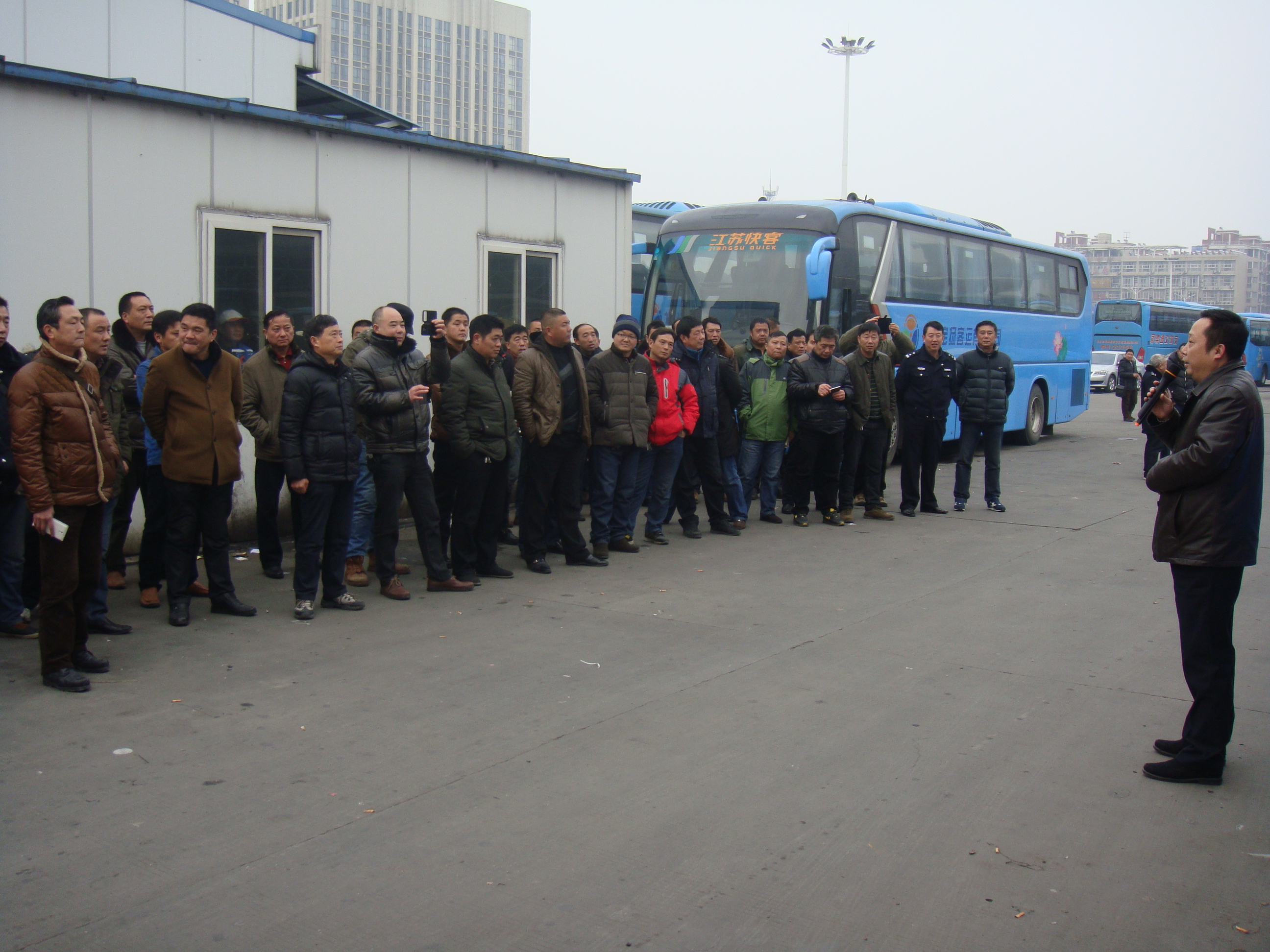 2月3日,春運前夕,集團公司聯(lián)合市運管處在揚州汽車西站舉辦惡劣天氣應急預案演練活動?偨(jīng)理助理萬雷,安全機務處人員以及來自全司各客運單位安全經(jīng)理、安全員、機務員、駕駛員代表計70余人參加了活動。副總經(jīng)理談衛(wèi)國指揮演練,市運管處書記徐才祥、市交通產(chǎn)業(yè)集團副總經(jīng)理王寧生分別對本次演練進行了點評,并對即將到來的春運安全生產(chǎn)工作作了重要講話。演練還邀請了市交巡警支隊一大隊同志現(xiàn)場觀摩指導。
