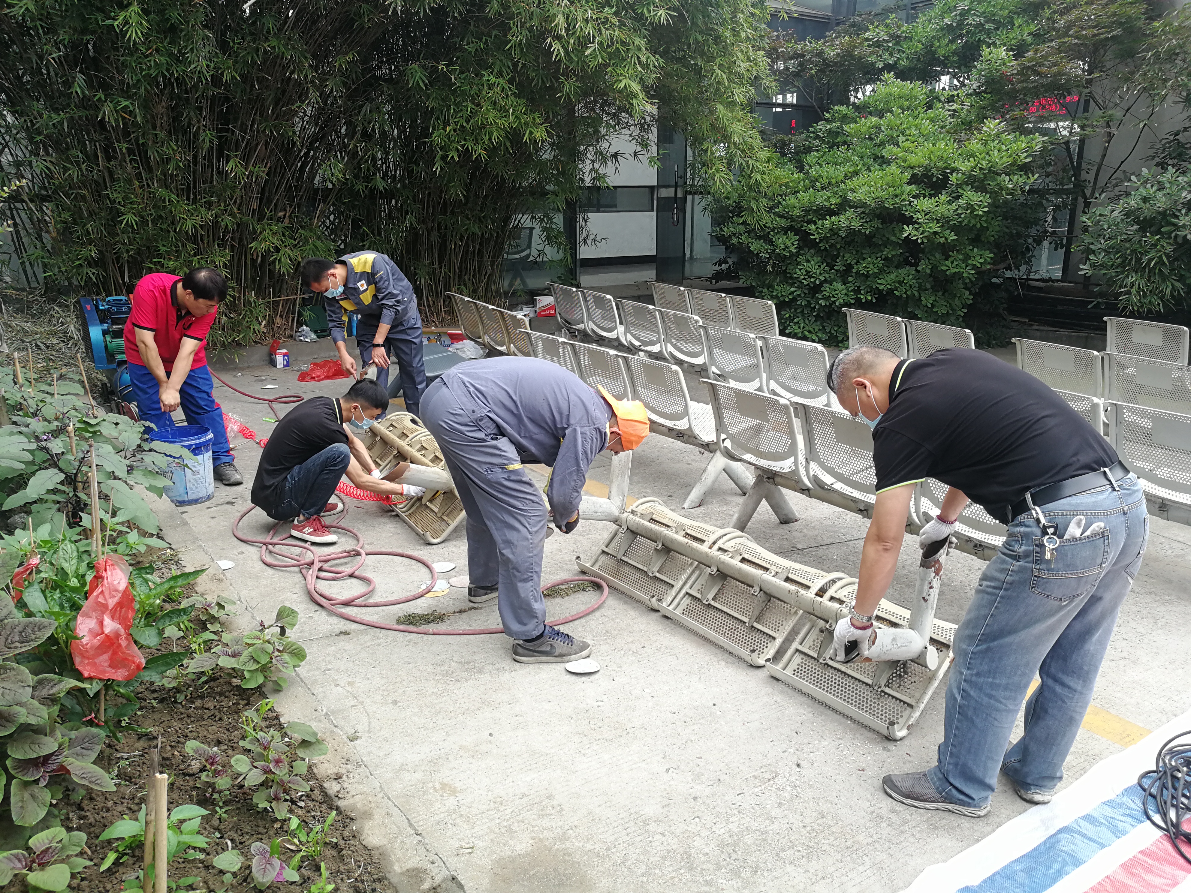 打磨的銹塵飄散在空氣里,濃烈刺鼻的油漆味充斥鼻腔,搬運座椅體力不斷流失,噴涂劃線長時間彎腰,團隊成員們都腰酸背疼,但斗志依然不減,精神依舊飽滿,隊員間相互鼓勵和打氣,保證每道工序無縫銜接、高效實施,在兩天里的時間里完成了全部任務,為江都站的文明創(chuàng)建奠定了良好的基礎,同時也展現了揚汽集團兄弟單位之間齊心協力、共同奮斗的良好精神風貌。