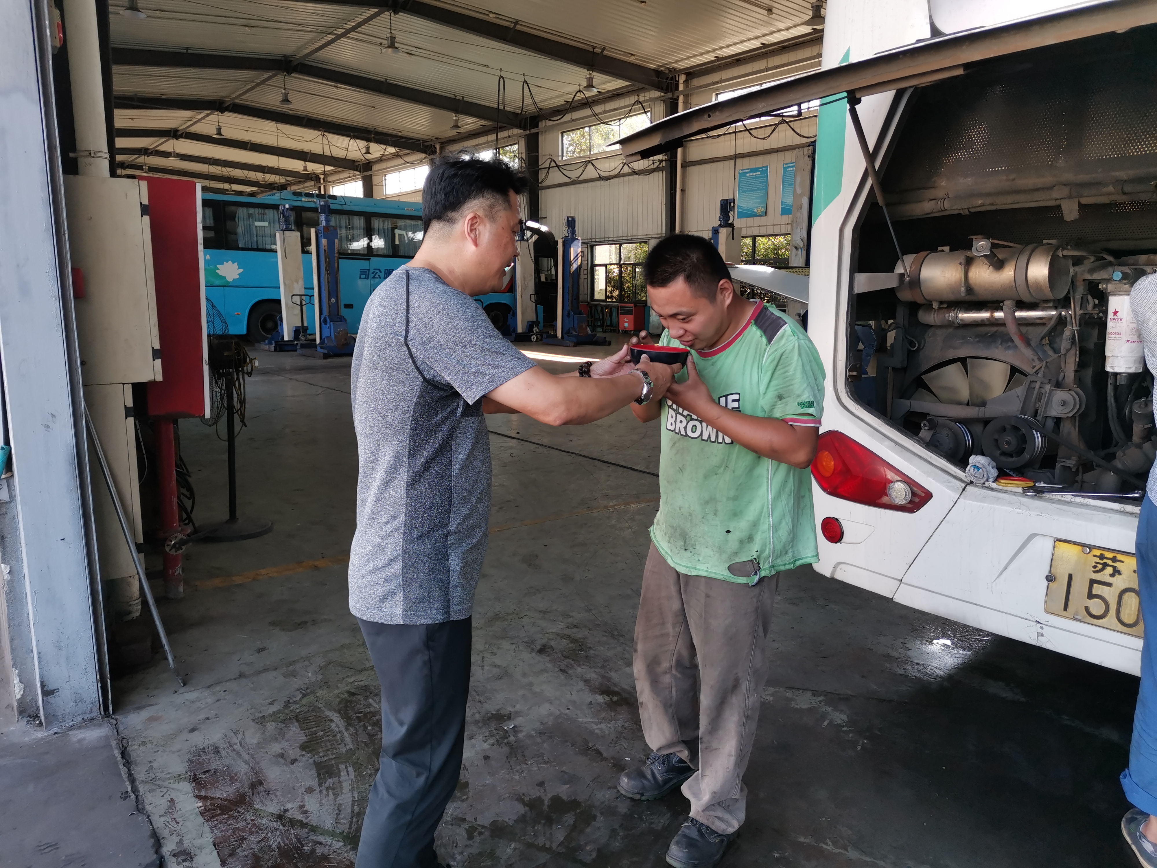 修理廠:針對高溫天氣,修理廠多種防暑措施并進(jìn),以發(fā)放藿香正氣水、龍虎人丹、毛巾、肥皂等防暑降溫用品以及全天不限時(shí)供應(yīng)礦泉水,堅(jiān)持每日發(fā)放冰鎮(zhèn)綠豆湯等方式,避免職工中暑現(xiàn)象發(fā)生,同時(shí)還要求班組時(shí)刻關(guān)注組員身體狀況,著重關(guān)注“三高”人群每日服藥情況,保持休息室空調(diào)長效制冷,確保職工及時(shí)有效防暑避暑,營造高溫下安全生產(chǎn)氛圍。