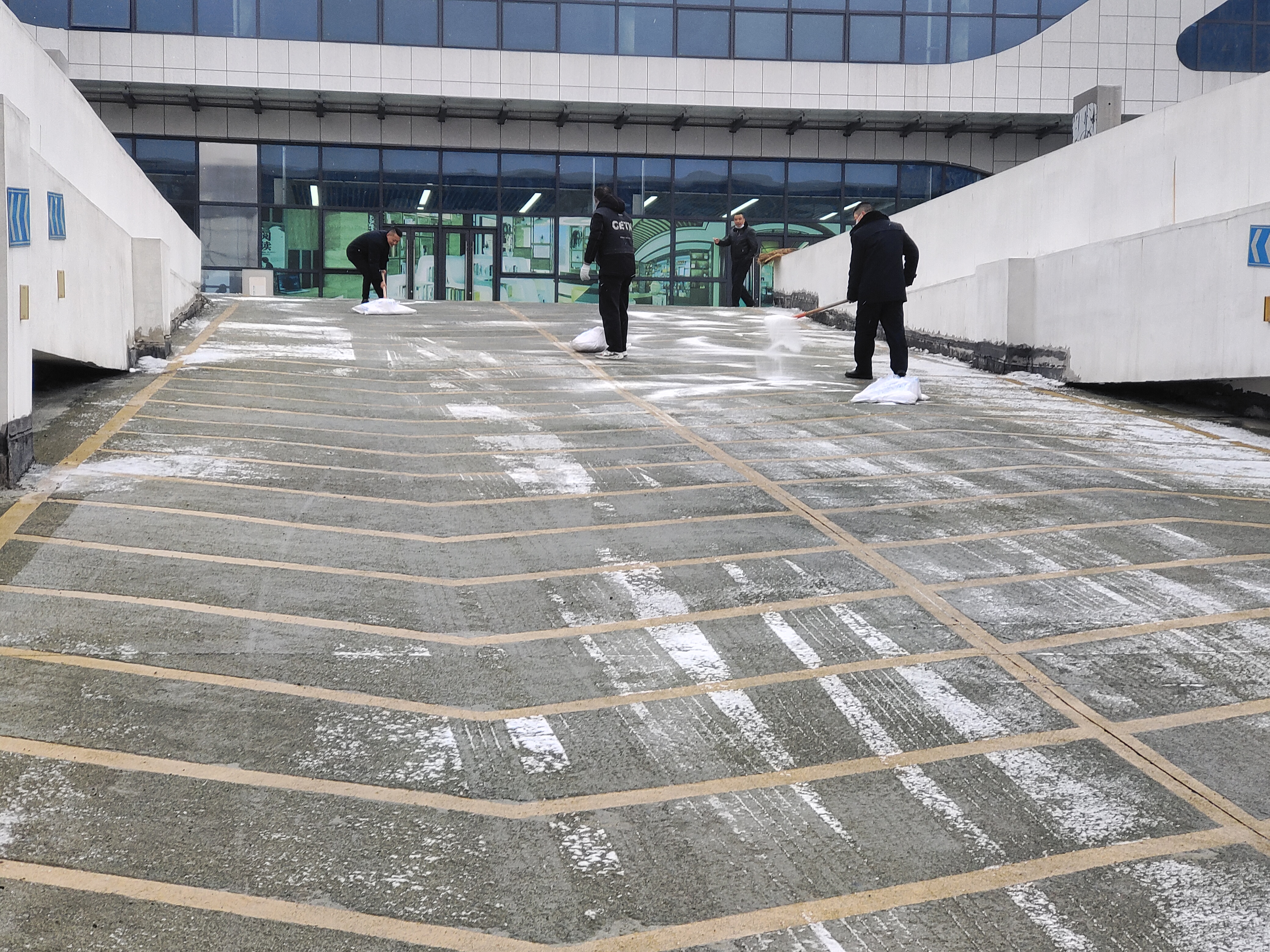 在揚(yáng)汽集團(tuán)所屬的揚(yáng)州汽車站、東樞紐汽車站、江都汽車站,為切實(shí)做好雨雪天氣的安全保障工作和低溫造成的路面結(jié)冰的情況,各車站立即啟用惡劣天氣應(yīng)急預(yù)案,各崗位職工根據(jù)前期工作部署,迅速采取行動(dòng)。對(duì)站前廣場(chǎng)和車輛進(jìn)、出站坡道進(jìn)行積雪清理、分區(qū)撒鹽、同時(shí)立好防滑警示牌、鋪設(shè)防滑草墊,為惡劣天氣下的客運(yùn)站增添保障,全力保障廣大旅客安全、便捷出行。同時(shí)叮囑駕駛員雪天減速慢行、雪天路滑、謹(jǐn)慎剎車、安全平穩(wěn)駕駛。