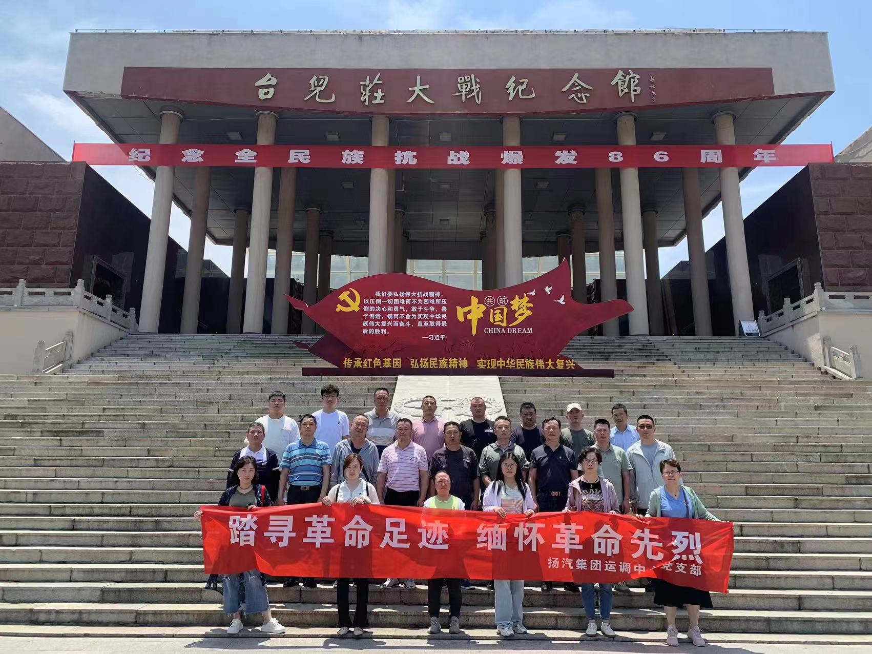 在慶祝建黨102周年暨紀(jì)念“七七事變”86周年之際,為緬懷革命先烈,繼承和發(fā)揚(yáng)黨的光榮傳統(tǒng)和優(yōu)良作風(fēng),7月7日,揚(yáng)汽集團(tuán)運(yùn)調(diào)中心黨支部開展“踏尋革命足跡,緬懷革命先烈”紅色之旅主題黨日活動(dòng),組織全體在崗黨員、積極分子和部分優(yōu)秀員工前往臺兒莊大戰(zhàn)紀(jì)念館,實(shí)地接受愛國主義教育和革命傳統(tǒng)教育。