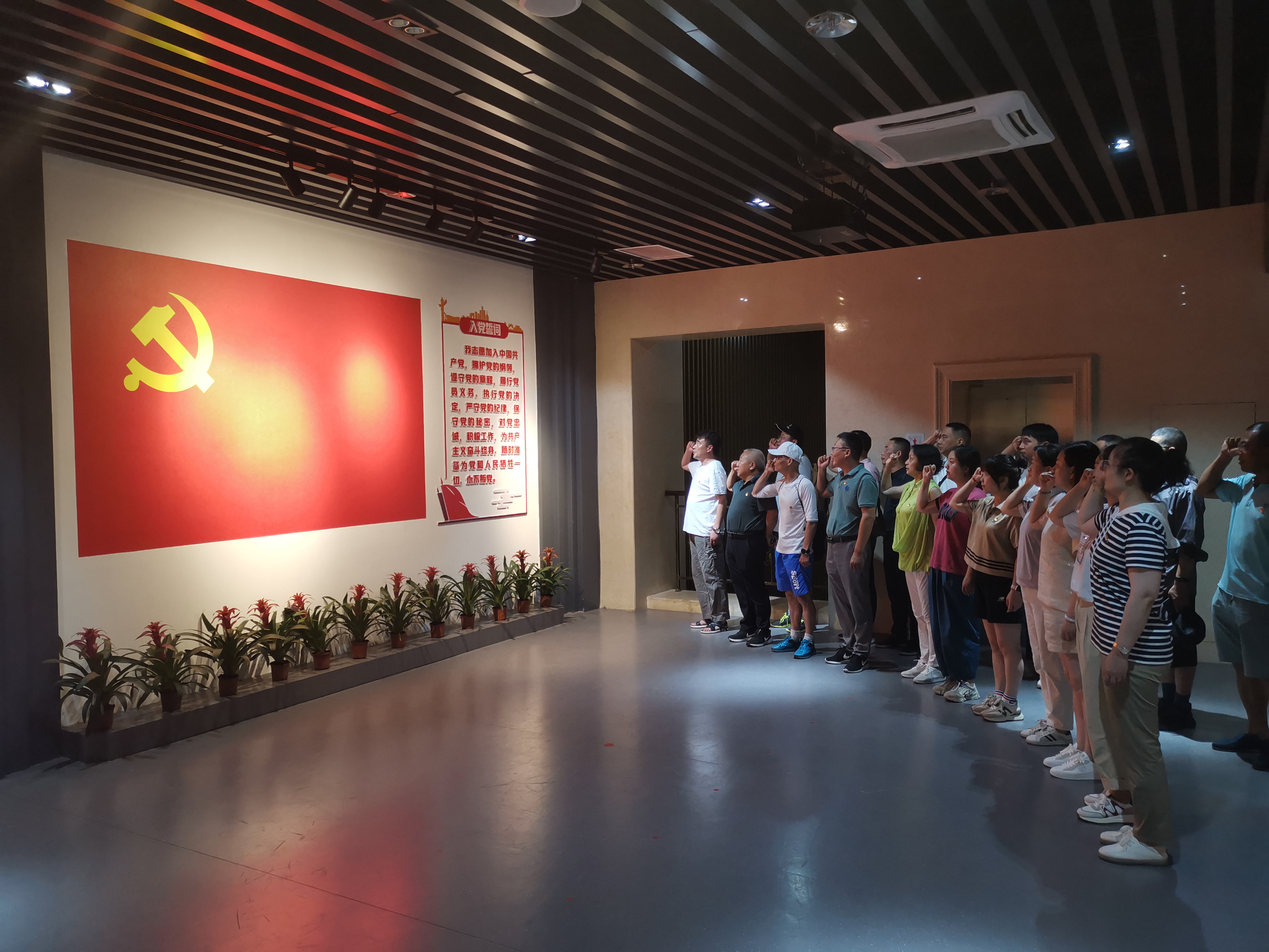 在紀念館內的宣誓墻前,全體黨員向黨旗莊嚴宣誓,鏗鏘的誓言擲地有聲,以飽滿的激情和聲音發(fā)出了身為共產黨員的自豪感和使命感,激發(fā)著大家干事創(chuàng)業(yè)的澎湃熱情。