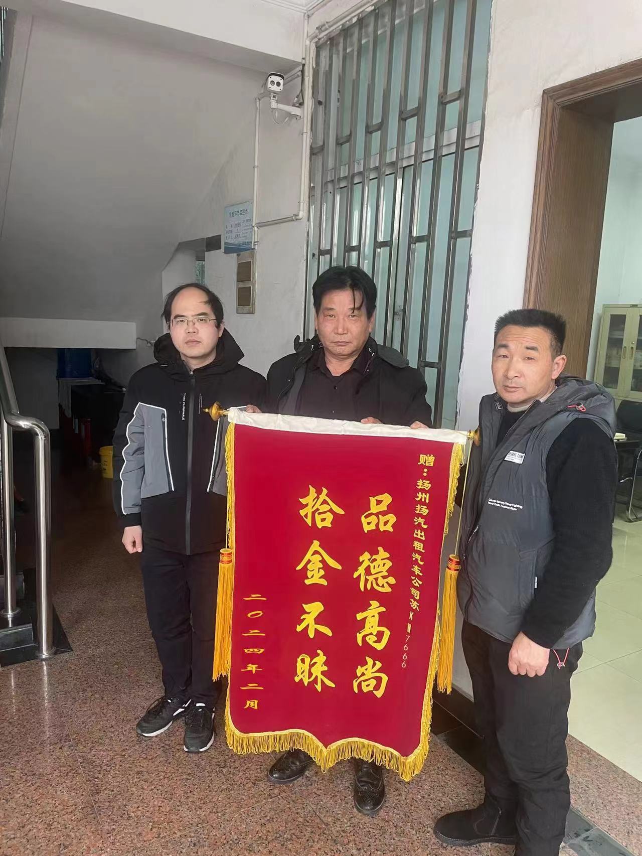 2月21日,揚(yáng)汽出租蘇KW7666出租車駕駛員楊文標(biāo)師傅拾金不昧,收到了乘客送來的錦旗,并向他表示感謝。